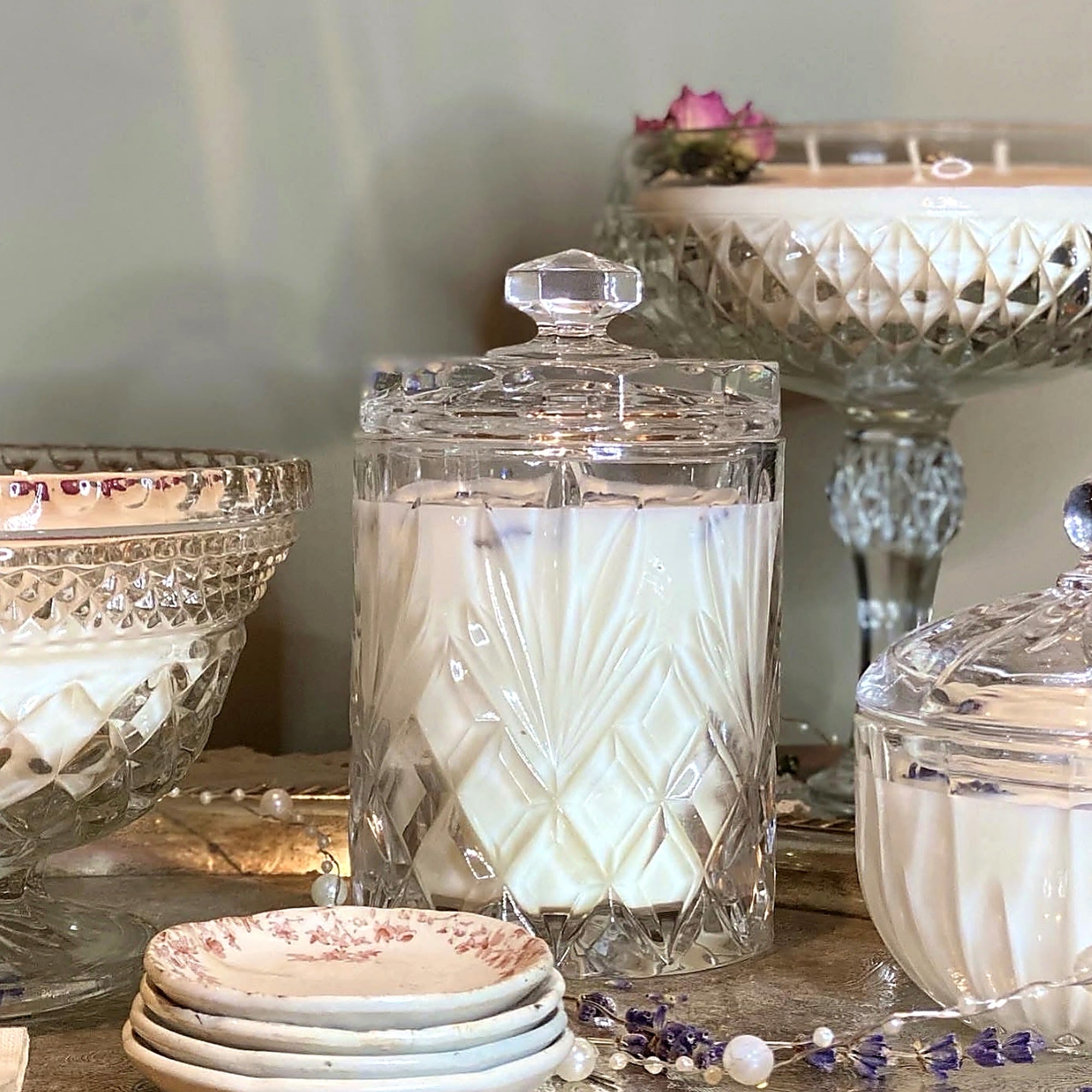 Curated vintage vessels • Hand-poured in Delray Beach • Clean, balanced fragrance • Reuse forever